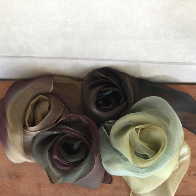 New シルクオーガンジー植物染めグラデーション