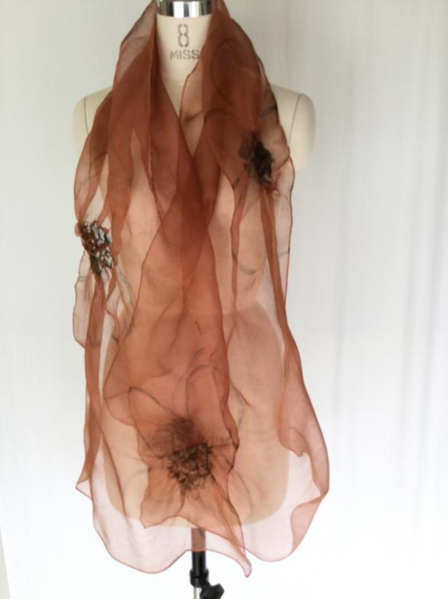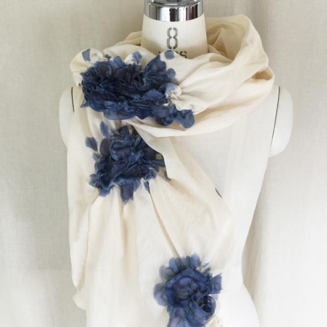 2014春 シルクシフォン 刺繍 植物染め