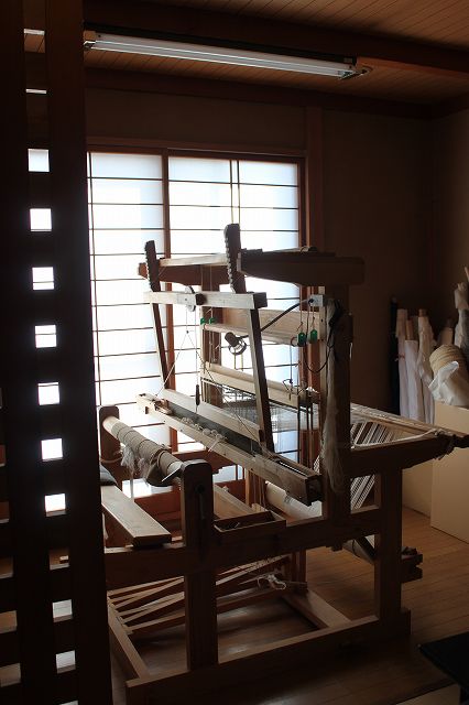 静かに佇む手織機100㎝の広幅の高機で20年以上一緒に仕事をしています。