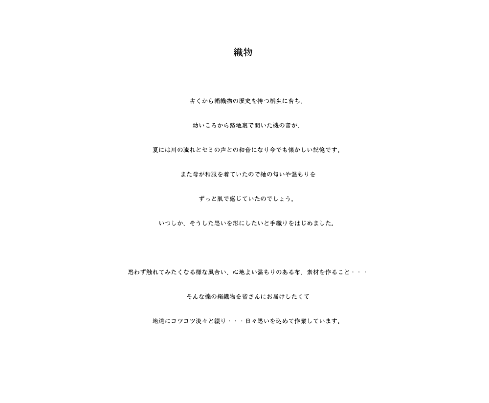 織りは作業の工程に時間が必要ですが織機と向き合うと無心になり何故か穏やかになります。